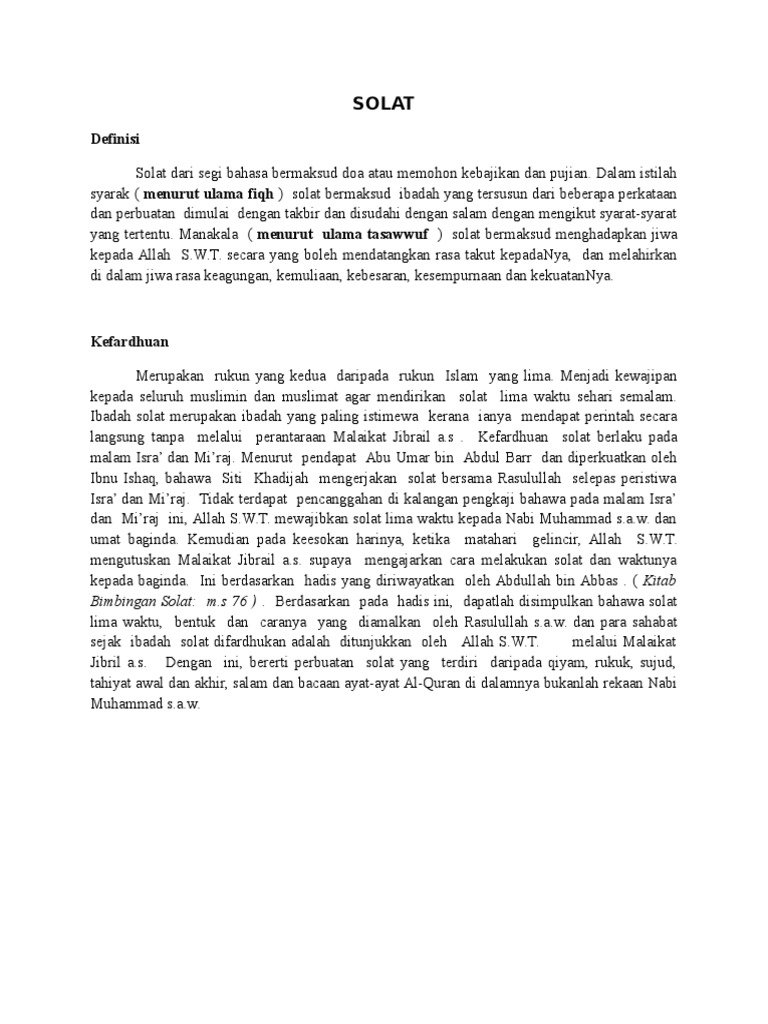 . Apakah pengertian solat dari segi bahasa Berapakah solat fardhu Apakah maksud rukun qauli Berikut adalah syarat sah solat kecuali Yang manakah syarat wajib solat Pilih. Dari segi syara solat bermaksud perkataan-perkataan dan perbuatan-perbuatan. Dari segi bahasa solat bermaksud doa.